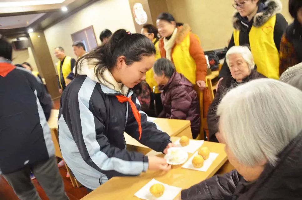 当天还有来自上海市子长学校的同学们,他们和老涞福的志愿者们一起,为在场所有的寿星老人们送上了小蛋糕,还为老人们演唱了《心愿便利贴》和小合唱《生日快乐》歌。